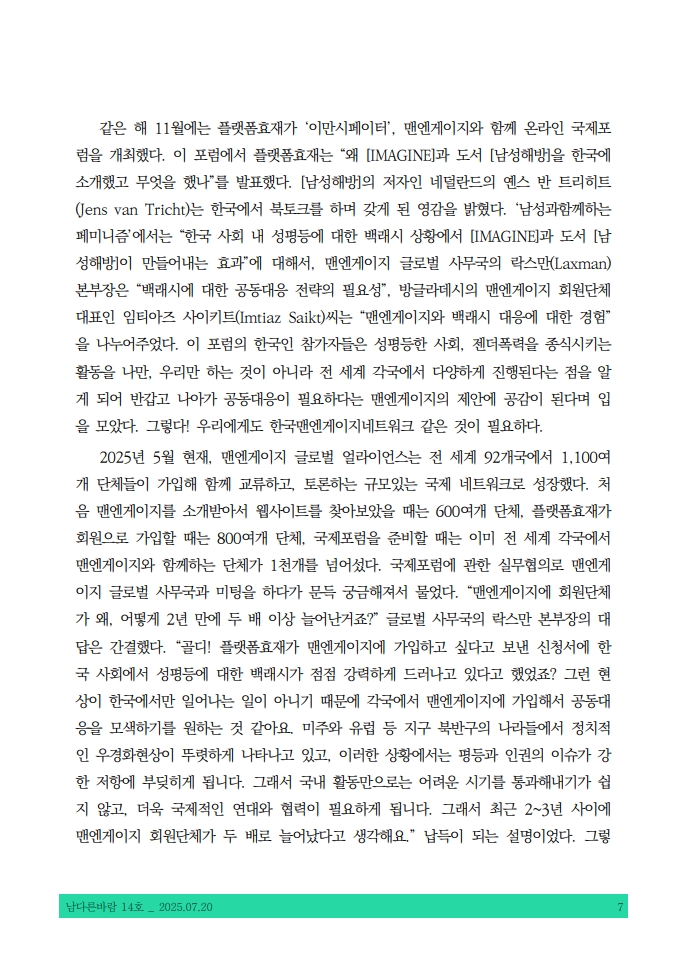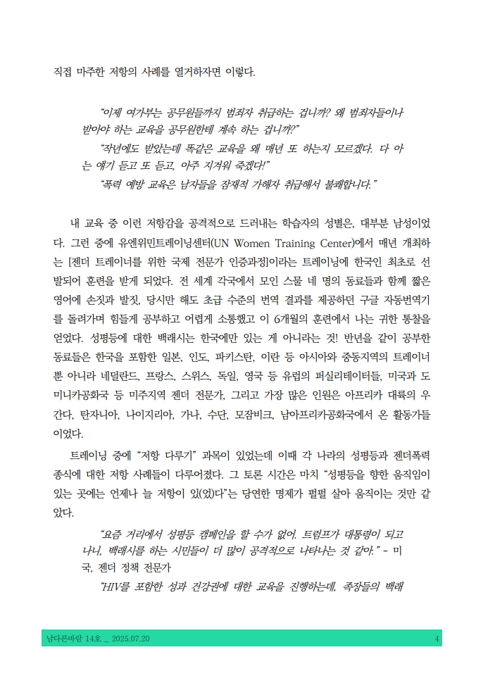 매월 다양한 시각과 알찬 내용이 담긴 성교육 전문지 [남다른 바람]을