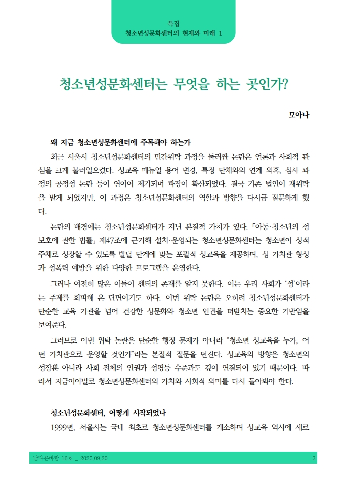 ✏️ 서울시 청소년성문화센터를 둘러싼 압박과 왜곡_by 달달