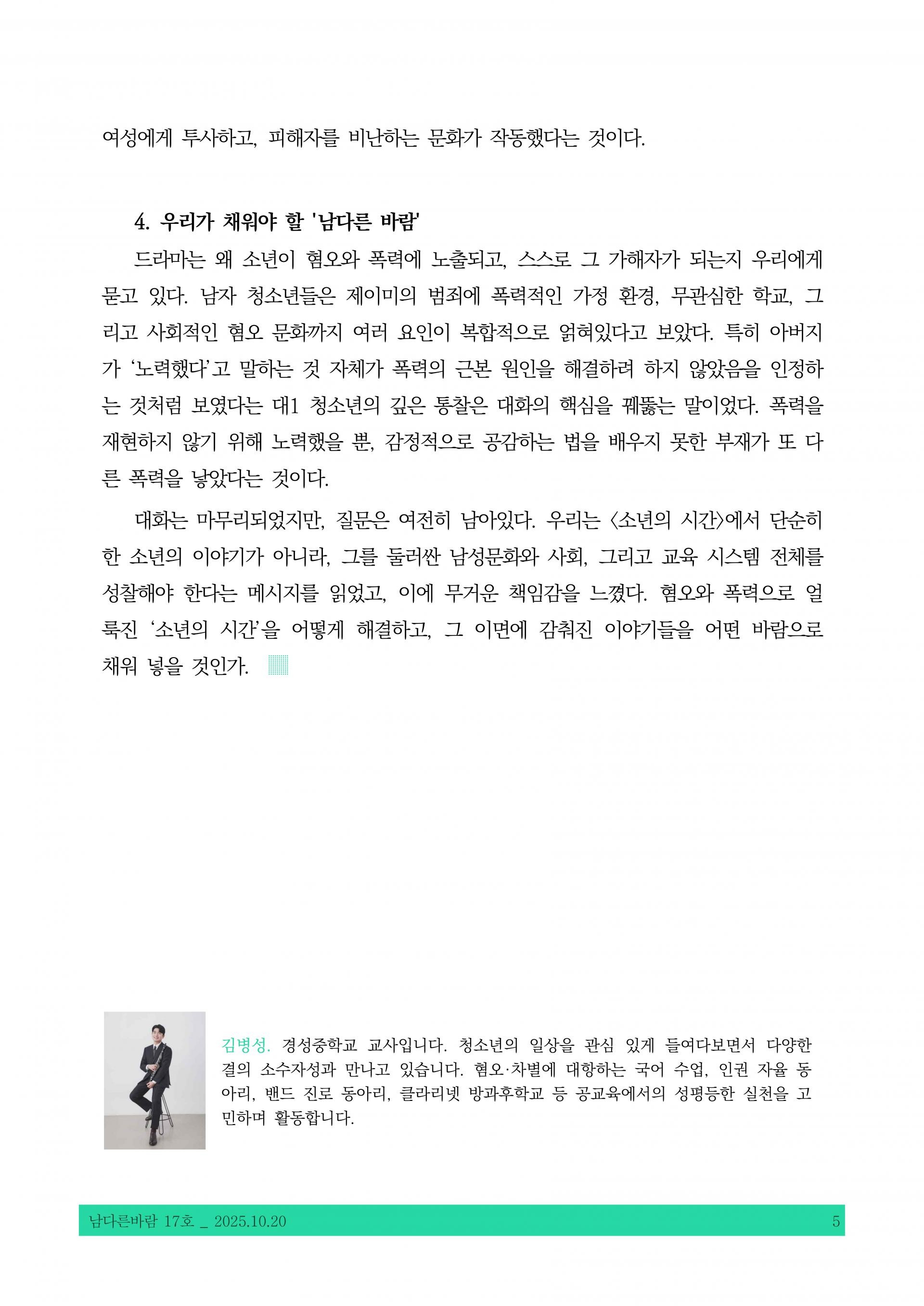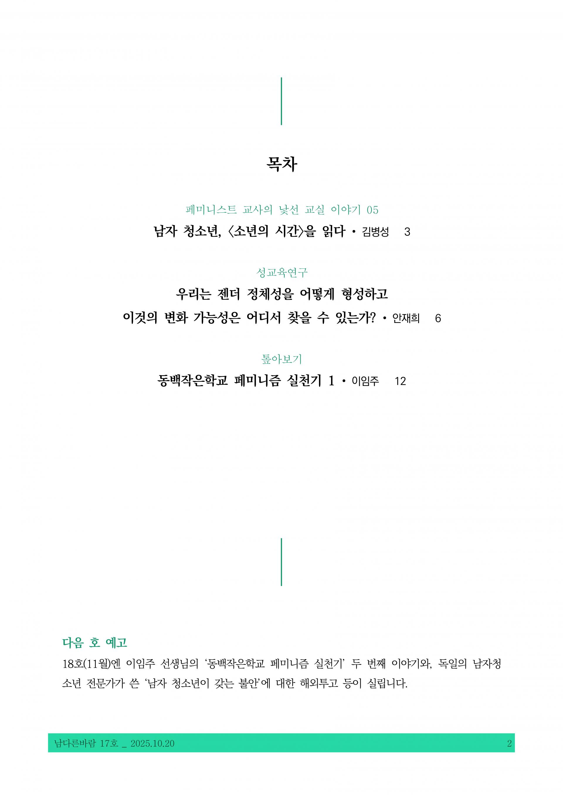 매월 다양한 시각과 알찬 내용이 담긴 성교육 전문지 [남다른 바람]을